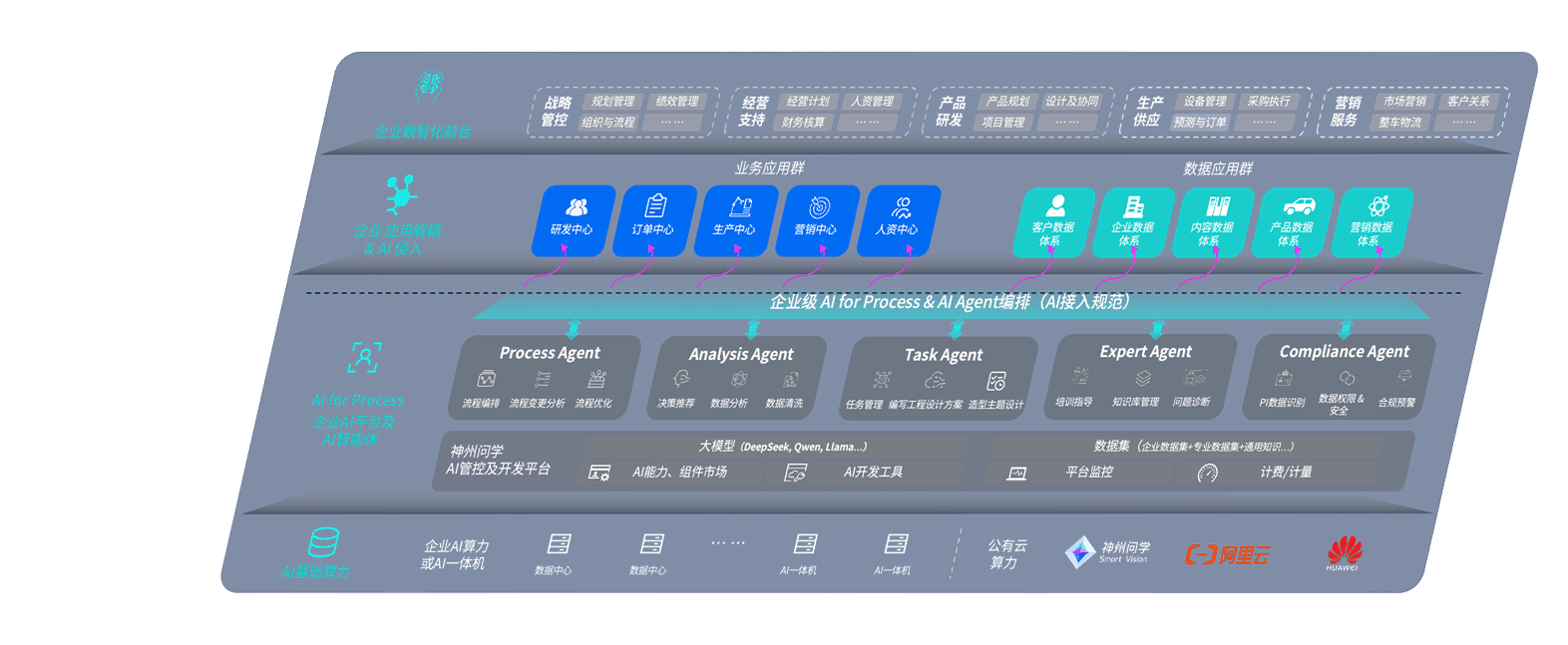 端到端的一站式AI工作空间深度融合了从企业战略规划到日常经营的全流程业务板块,,定向解决车企内部领域多、、、、部门多、、链条长、、、、场景碎片化等难题,,,支持车企快速构建以AI为核心的生产力写作体系,,,,实现任务执行与AI能力的无缝集成与交互