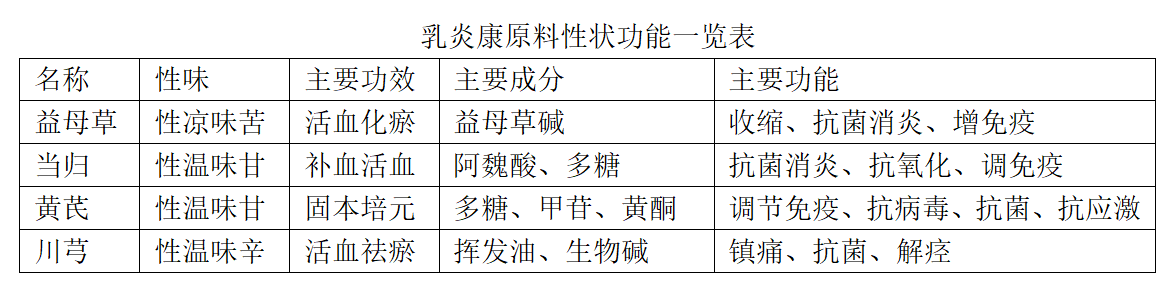 协同配伍不同性味、、、、不同功效、、、不同成分的植物活性物质,,,发挥中药整体调节作用,,,从抗菌消炎通乳及抗应激多方面改善奶牛乳房健康,,,,从而促进泌乳、、改善奶品质。。。。