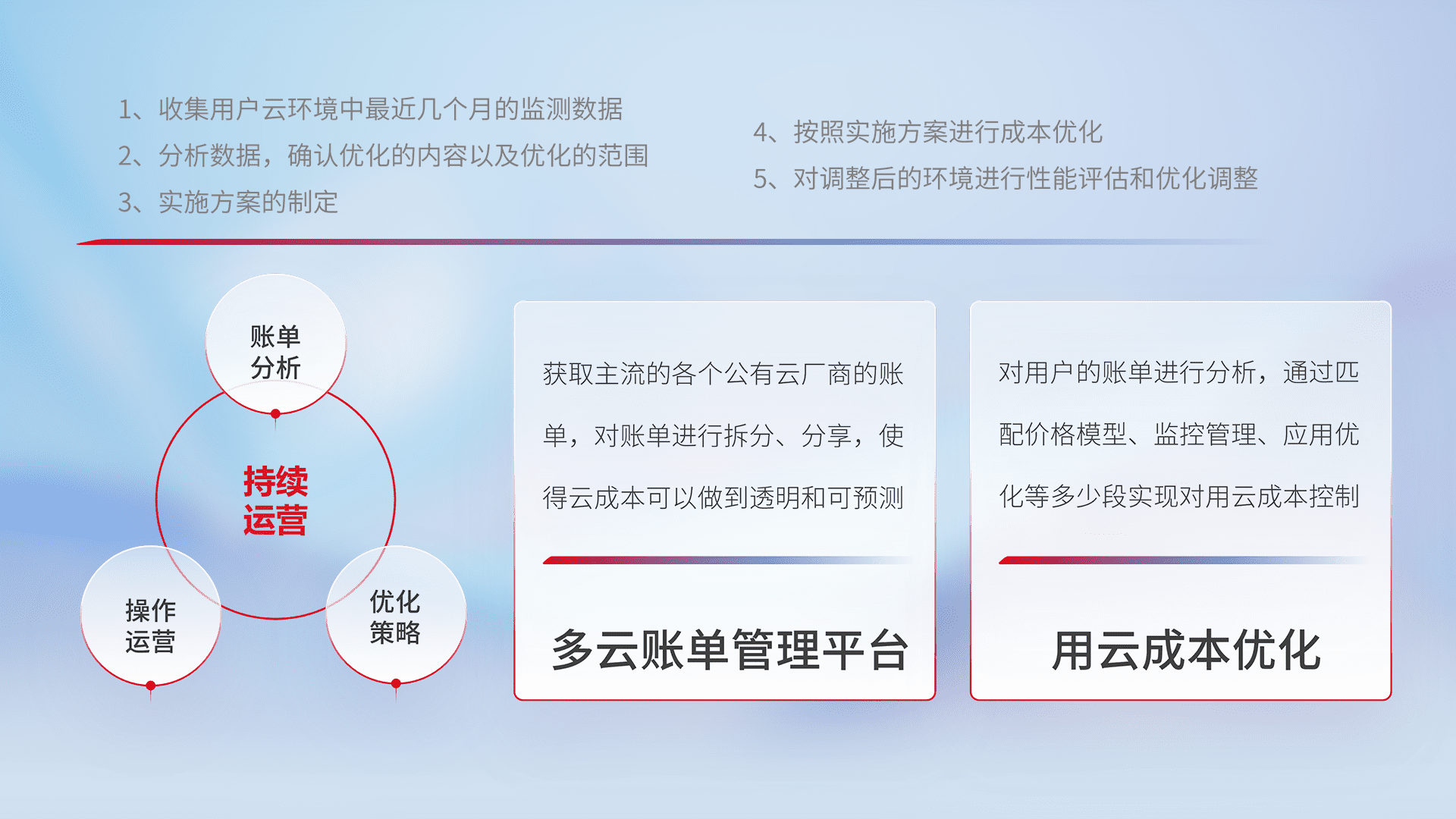 运用智能化工具分析云资源,,,提供日常费用可视化工具,,,,自动账单拆分,,成本优化云上费用,,,,降本增效。。